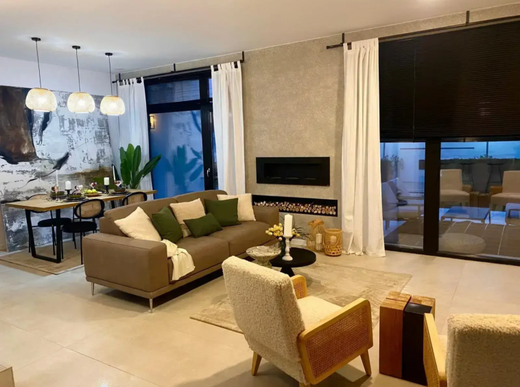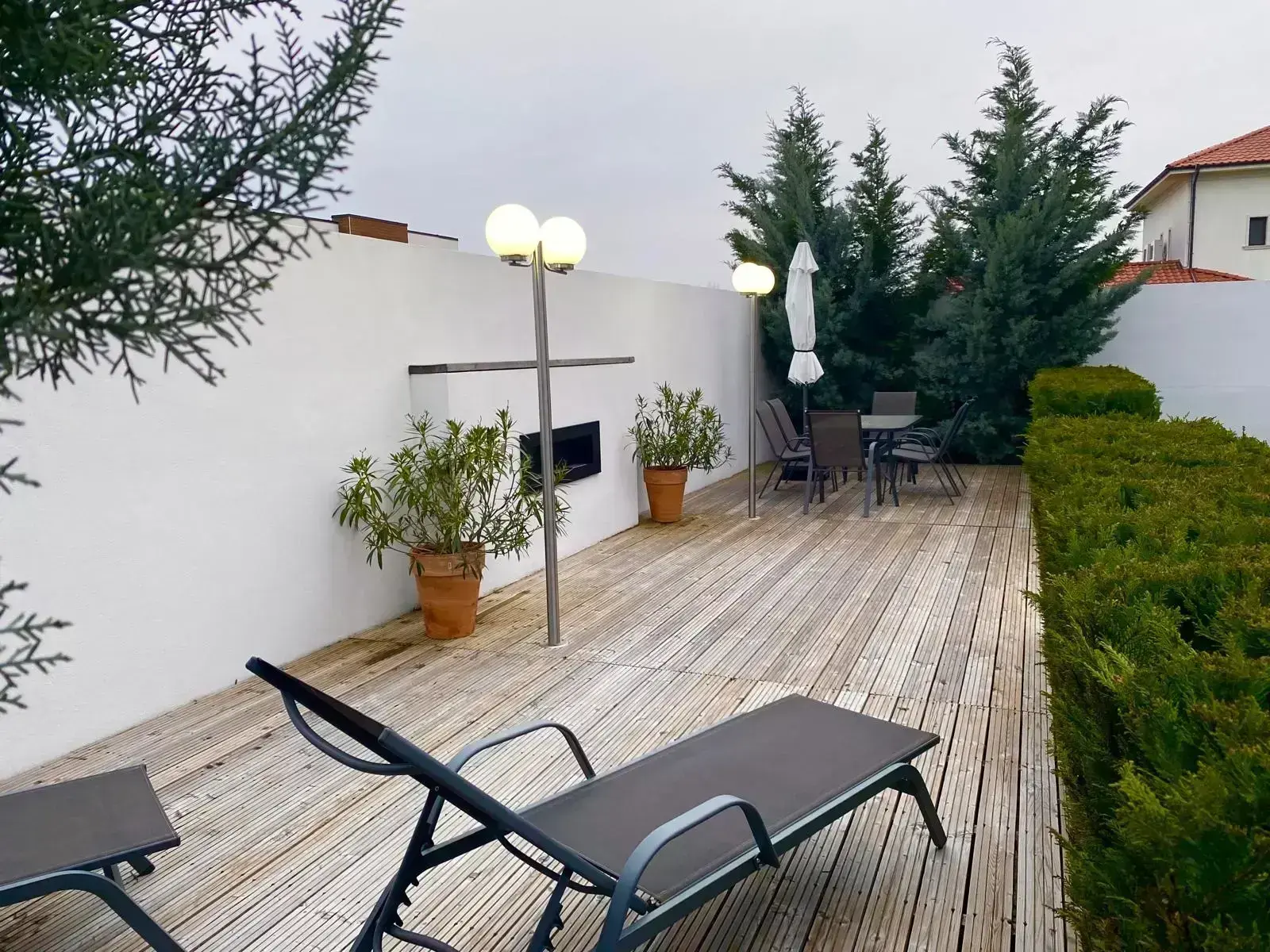 Finisajele reflectă atenția la detalii: mobilier din stejar și salcâm, ceramică porțelanată, mozaic de marmură, cadă freestanding și elemente decorative de la branduri precum Kave Home, Floss și Villeroy&Boch. Grădina, organizată în zone de relaxare și bucătărie de vară, include conifere mature, deck din lemn, șemineu exterior și un sistem de irigare automatizat.