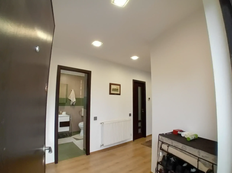 Interiorul fiind compus din living si dining cu acces spre terasa spatioasa de 17mp, bucataria, baie si spatiu depozitare la Parter, iar la Etaj sunt 2 dormitoare, 2 bai, un dressing si o terasa / balcon de 10mp.