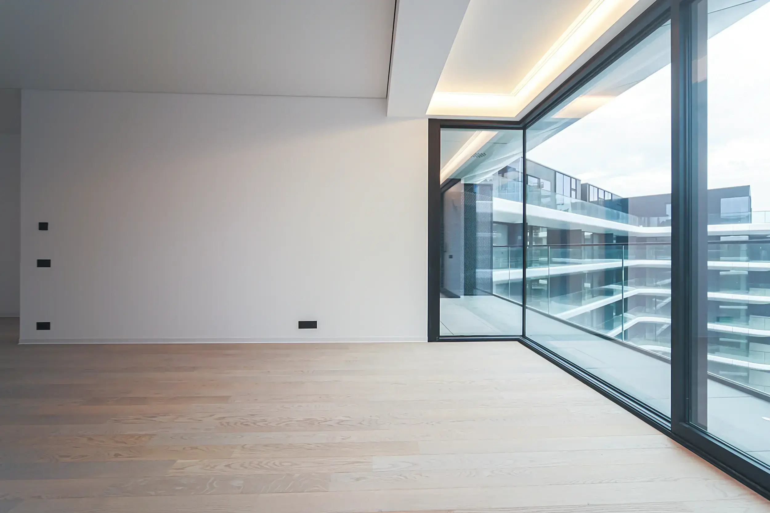 + Balustradă din sticlă securizata, in zona balcoanelor.